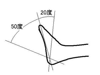 「つま先をあげた時、指の付け根がくるぶしの高さまでくると20度」